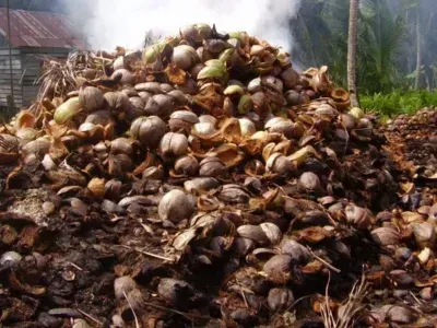 With a secrete machine , anyone can turn this kind of coconut waste in a massive money making product.